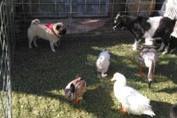 besides the two ponies we take the following animals with 12' x 12' Corral. 2 bunnies, 4 chickens, 1 mini pig and 1 sheep.